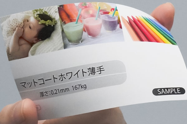 印刷の仕上がりや肌触りは通常用紙と変わらず高品質な印刷と安さを実現した当社オリジナルの名刺です。